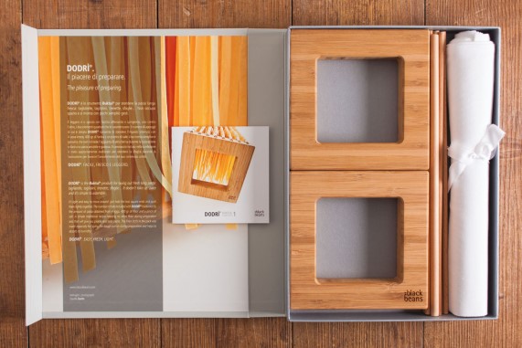 Una volta preparate le sfoglie e le tagliatelle, adagiarle sugli appoggi di DODRÌ® – può essere comodamente sollevato e spostato afferrando contemporaneamente i sostegni laterali e spingendoli l’uno contro l’altro. Il canovaccio di puro lino può essere usato durante la preparazione della sfoglia, facilitando l’assorbimento dell’umidità.